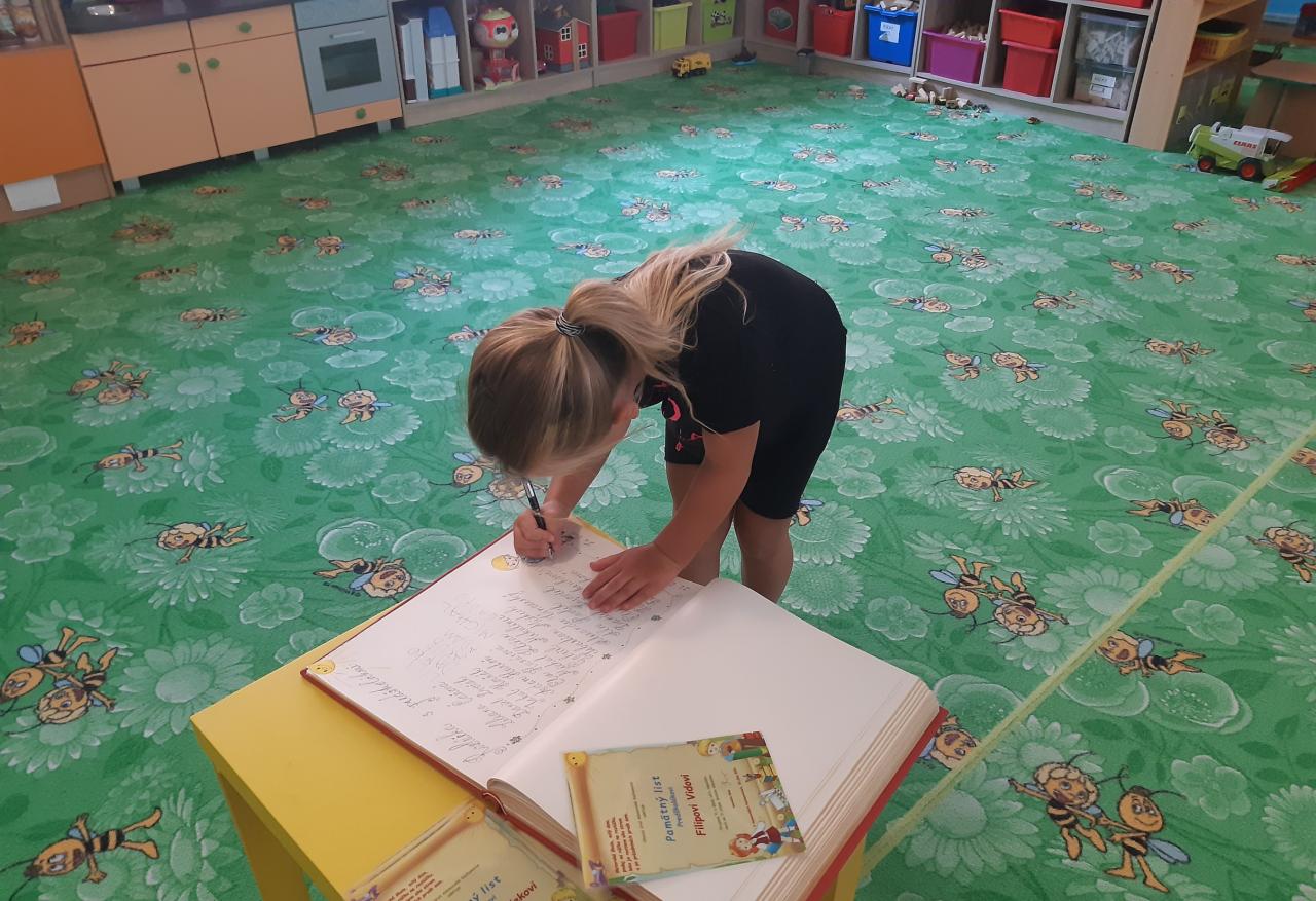 Detičky sa potešili a do knihy podpísali.