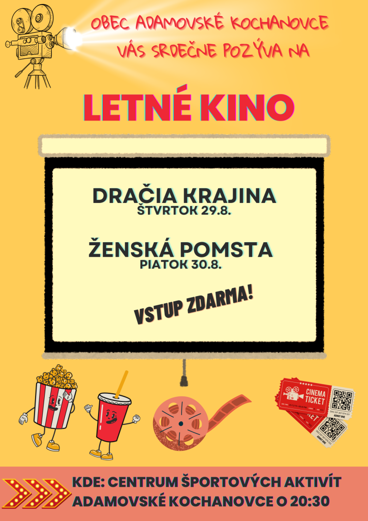 Vo štvrtok 29.8. a v piatok 30.8.2024 si na svoje prišli fanúšikovia filmu a rozprávok. Pod holým nebom sa premietala rozprávka Dračia krajina a následne na druhý deň vtipná komédia Ženská pomsta.